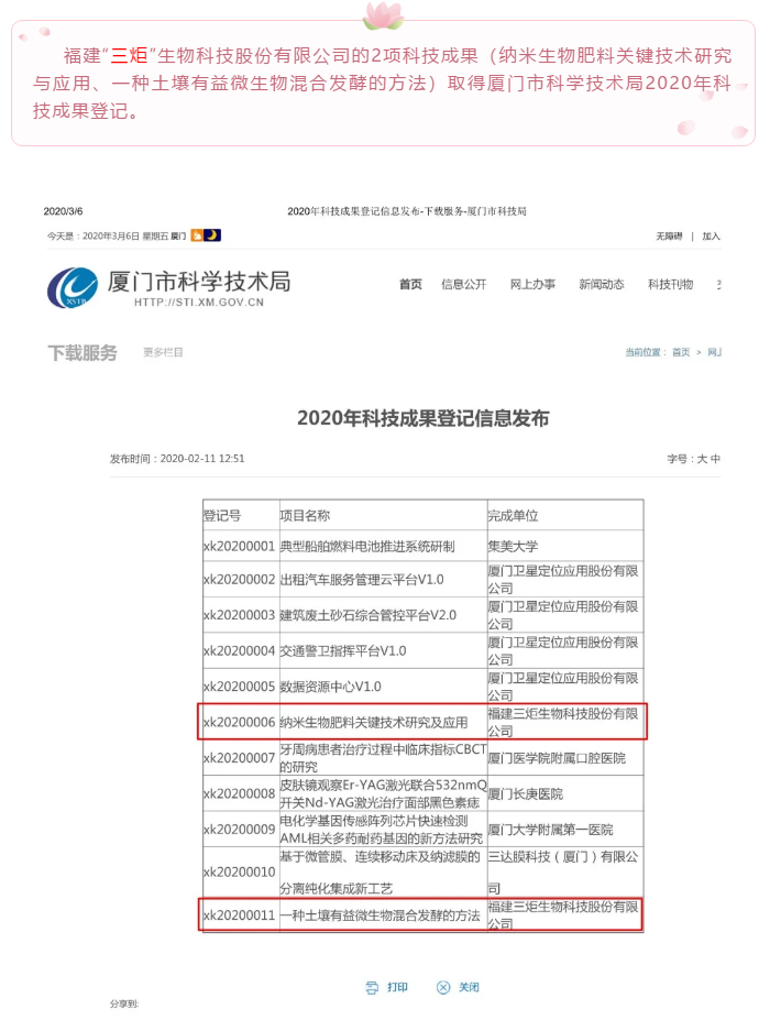 【三炬新聞】三炬生物科技研發成果取得廈門市科學技術局2020年科技成果登記